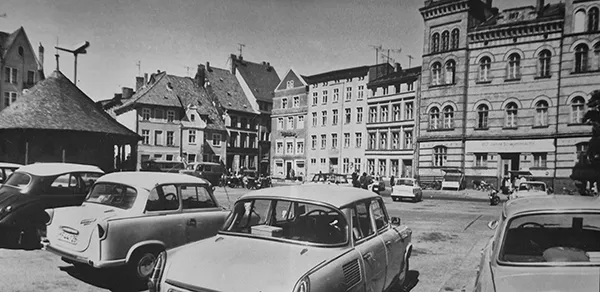 In dieser Zeit wurde der Platz umgestaltet und zeitweise in „Leninplatz“ umbenannt. Neue Gebäude, veränderte Wegeführungen und der typische sozialistische Stadtcharakter prägten das Bild – doch die Milchbar blieb ein kleiner, vertrauter Anlaufpunkt. Während ringsum Läden, Büros und kulturelle Einrichtungen entstanden, bot sie weiterhin einen Ort für eine kurze Pause, einen schnellen Kakao oder ein paar ruhige Minuten mitten im Alltag. Menschen aus allen Teilen der Stadt trafen sich hier – Schüler, Pendler, Marktbesucher und Stammgäste –, bevor sie in Cafés, Kneipen oder später auch in einen beliebten Italiener in Stralsund weiterzogen. Der Platz war durchgehend lebendig, ständig in Bewegung – und die Milchbar gehörte für viele ganz selbstverständlich als fester Bestandteil dazu.